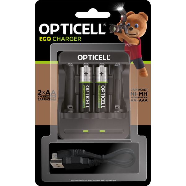 Отзывы на Зарядное устройство с аккумуляторами Opticell Eco Charger AA 2600 mAh (2шт)